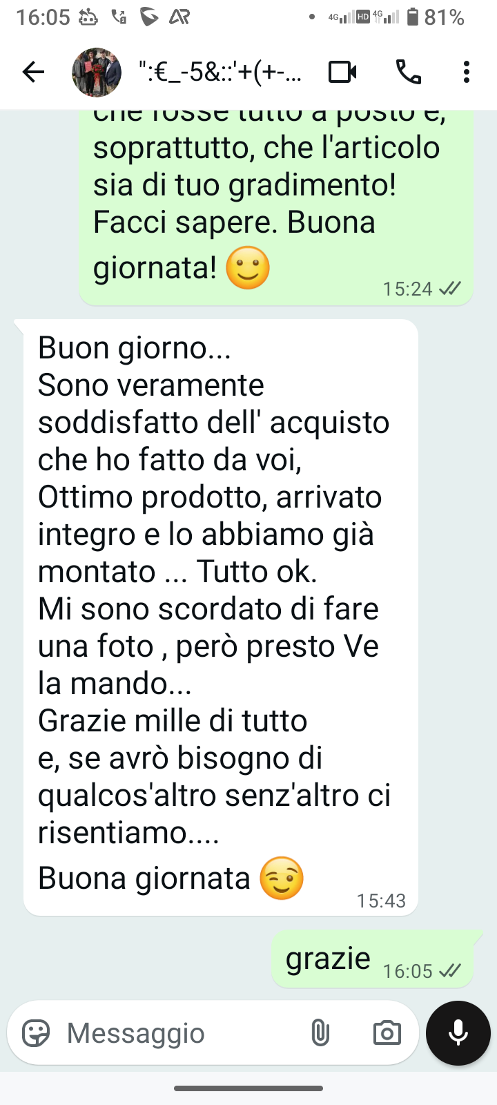 (i messaggi pubblicati sono stati inviati dai clienti per loro spontanea volontà, non sono stati sollecitati con sconti e/o altri vantaggi commerciali, l'informativa è a questo link PRIVACY )
